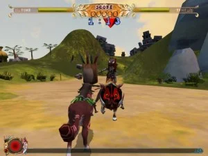 During the Fall semester, our development team consisted of two programmers (Mark Sullivan III and Igor Kopylov), myself on design, Yeuhi as the product owner, and of course QA testers Jose Soto and Ruben Perez. When implementing new features, we quickly ran into the limitations of having such a small team. In particular, not having an artist meant that we had to make do with existing assets, only tweaking the models’ poses slightly. The puzzle-like jousting idea became an impossibility just given the shape and size of Moki and Chawi (the NPC enemy). As we came up with new ideas, we had to find ways to reuse assets in new ways. To create a circular track, a single hut was placed in the center of the arena level and enlarged to fill most of the space.